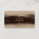 rustic wooden textured business card with a chic stylish inky brush stroke, first and last name in a luxurious gold in front, full name, career in black and contact info in gold thanks to contrast in back.