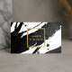 Inky, black paint brushstrokes create an abstract backdrop on this designer business card template. Your name or business name is displayed in a faux gold box on the front for a modern esthetic. This double-sided card allows ample room on the backside for your contact info. A fun, eye-catching card for creative professionals. Art and design © 1201AM Design Studio | www.1201am.com