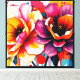 A vibrant composition of abstract flowers, blending bold colors and fluid shapes to create a dynamic and expressive artwork. The mix of soft and striking tones evokes a sense of movement and artistic freedom.