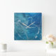 abstract blue and aqua design square wall clock