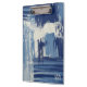 An abstract composition of freeform shapes and marks in a color palette of blue and ivory. Personalize with an initial.