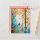 The Abstract Blue Bird in Autumn Golden Leaves Forest postcard graces your hands, bringing a slice of nature to your space. The design features a charming blue bird with vibrant feathers, perched among the golden leaves of an autumn forest. The realistic bird illustration captures the beauty of wildlife and nature. It's a delightful treat for bird lovers and watchers, offering a glimpse into the world of these feathered friends against the backdrop of a fall forest. The postcard's aesthetic charm lies in its lifelike depiction and the warm tones of autumn, making it a perfect fit for those who appreciate the beauty and grace of birds in the enchanting setting of a golden leaves forest. Display it proudly to bring a touch of nature's magic into your surroundings.