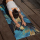 As a yoga mat, it is comfortable to use. I place a second mat under it for added comfort. But I mostly use this particular mat design for "Distance Reiki". (I am a graphic designer but I also do distance reiki work and needed something full size to work with my clients so I designed this for that purpose. The Chakras are highlighted and make it easy to place charkra stones over. I use a pendulum and tuning forks to balance the body's energy, and this helps me know, with greater detail, what part of the clients body I am connecting to when I feel fluctuations in the energy field. I am very pleased with how my design turned out. The background is very complex with color gradations and with text at the bottom. The text is readable and I am pleased with the detail in the graphics.