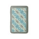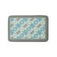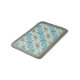 Abstract blue, gray snowflake pattern with border bath mat. It showcases a geometric pattern made of abstract snowflakes in blue, gray and black. There is a grey border around it.