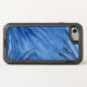 Protect your iPhone 8/7 from drops with a rugged OtterBox Case featuring a distinctive design of abstract blue painted rays radiating from the top right and bottom corners. The background of the watercolor painting is a wash of lighter blues.
