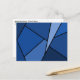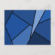 Inspired by stained glass, this stylish geometric design contains polygons in various shades of blue outlined in black. A light blue triangle slashes in from the upper right with an array of progressively darker blue quadrangles and other shapes spiraling around it from light to dark. Two dark blue shapes ground the left side of the original design.