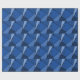 Inspired by stained glass, this stylish geometric design contains polygons in various shades of blue outlined in black. A light blue triangle slashes in from the upper right with an array of progressively darker blue quadrangles and other shapes spiraling around it from light to dark. Two dark blue shapes ground the left side of the original design.
