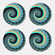 Abstract Blue Turquoise Orange Fractal Art Spiral Coaster Set