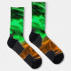 This fun Halloween socks are bright and colorful. The small print is crisp and shows the fun details. The softness of the socks feels nice on my feet and ankles. .