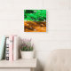 Abstract blurry spotted pattern in orange green square wall clock