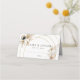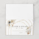 This stylish boho wedding place card features arches in faux/fake gold with abstract botanicals and objects in watercolor on a white background. The reverse side features a white background with geometric patterns in ocher or yellowish brown. Personalize it for your needs. You can find matching products at my store.