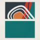 Abstract retro line art. Hand drawn rainbow design. Boho artwork, blue red terracotta teal white colors.