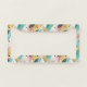 This seamless abstract pattern license plate frame features broad, expressive brushstrokes in soft shades of teal, pink, and light blue over a light cream background. Scattered throughout the design are clusters of dots—some solid in deep blue or black, others shimmering in gold with textured, net-like detailing. Additional gold specks and larger golden dots bring a touch of elegance and dynamic visual interest. The result is a modern, artistic composition that’s both vibrant and refined.