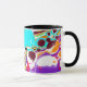 Blue, lime green, purple, orange colorful abstract fluid digital art coffee mug.