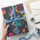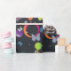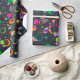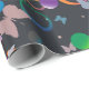 make your gifts stand out with this premium wrapping paper featuring a bold contemporary nature pattern and multi-color butterfly print. the dark charcoal background makes the neon rings and floating spheres pop, creating a sophisticated and modern presentation for birthdays, holidays, or special occasions. this vibrant patterned gift wrap adds an artistic touch to any present, ensuring your gift looks just as beautiful on the outside as it is on the inside.