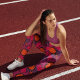 The dainty interlinked rosette design at the waist is truly unique. The poly-spandex makes for a nice fit and available in sizes 0-16. The printing is vibrant and eye-catching.