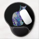 The plastic backing is nice and sturdy. The grippy pads underneath keep the mouse pad where I put it on my table. The pad the mouse sits on is cut well to fit the backing. The wrist pad is perfectly soft, supportive, and thick. I'm left-handed, and this mouse pad works just as well for me as it does for my right-handed friends. I'm the designer of HippieClecticHope products. I'm blown away by how well my intricate fractals turn out on the tangible items in the Zazzle Marketplace. This particular mouse pad ***appears*** like a 3D object... A mathematically-engineered rainbow black opal, inlaid under transparent fabric...