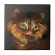 Cat face photo fractalized into a neon abstract kitty image ceramic tile