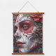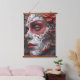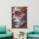 A captivating abstract portrait of a woman in Day of the Dead makeup, her face surrounded by flowing, colorful flowers. The intricate details blend with bold, expressive shapes, creating a modern and artistic tribute to the rich traditions of Día de los Muertos.
