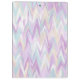 An abstract chevron design in a purple, turquoise, ivory and white palette.