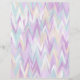 An abstract chevron design in a purple, turquoise, ivory and white palette.