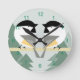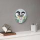 Nature lovers clock of a pair of Black Capped chickadees facing each other with evergreen trees in the background