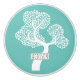 Abstract circle tree and name on light teal Ceramic Knob . A modern ceramic knob with a white tree made of circles.