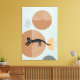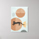 Abstract circles and arches with moody black cat. Colors of cream, dusty blue, terracotta and black.