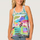 Women's All-Over Print Racerback Tank Top, White Piping, S