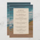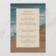 Modern wedding menu featuring your dinner menu over an abstract coastal background.