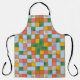 Great color and even though I ordered the kid size, it covers well enough to use during the holidays. I am not a big woman and prefer a shorter apron. I stand 5"6" and the length of the garment goes to mid-thigh. The tie straps fit well at my waist and even though there is no neck strap adjustment, the opening is plenty big enough. I am happy with the size and fit. I am sharing my apron with my 10 year old grandson, too! The color is vibrant and looks good, as shown on the website. The stitching looks strong and reinforced. Photographed is front side and back side of the apron, reinforced straps and coloring. My phone camera may not be the best at showing the details.