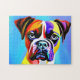 Abstract colorful Boxer dog on a blue background Jigsaw Puzzle