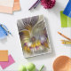 I was super excited when I got my cover in. It is attached by a magnet across the edge. I don’t think it will be very protective but it is very cute. I’m going to keep my iPad in a sleeve and use this face cover while I have it out. It folds to create a tilt for better viewing and to keep the iPad at a slight angle for typing. The colors are bright and it is fun. I’ve really enjoyed it. The personalization looks like amazing. It is the same color as the picture and is the same brightness. Well done! Very nice.
