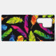 A vibrant and modern design with multicolored feathers on a black background. Perfect for adding a touch of joy and pizzazz to your projects.