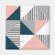 Colorful geometrical design illustration in Scandinavian style with gray, pink, navy blue, white and black colors