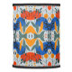 It was quick delivery, sooner than expected. This lampshade is exactly as described and the perfect size for my lamp. I replaced the old bell shape lampshade with this barrel shape and it allows me to place my lamp closer to the wall. I love the soft colors of this lamp shade and the modern-southwest design. In the evening, the light is a cream color. I am very happy with this lampshade and highly recommend this product. (Pardon the quality of my photos for this review.)