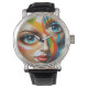 Bold, abstract strokes form a mesmerizing, colorful face.
