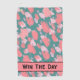 Get a little motivation with this inspirational quote colorful golf towel. "Win The Day" on the front in black vintage modern font that has a bit of a Gatsby vibe. But you can also change the text out for a different quick reminder or name or something like 'Fore!' if you prefer. The brushstroke pattern features a mix of calming yet vibrant hues with blush or baby pink, flamingo pink, turquoise, and a tiny subtle hint of purple. Contrasting with black stroke and font. Colorful Abstract Motivational Golf Towel