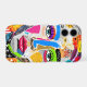 This bold and energetic phone case features an abstract woman's face rendered in a high-impact pop art collage style. Bursting with vibrant primary colors, neon highlights, and layered textures, this maximalist artwork is a true statement piece.