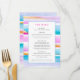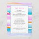 Abstract colorful tropical tidal waves event or wedding menu. Perfect for a minimal or modern beach art tropical or coastal sea wedding or sit down four course dining event. Edit this four course menu with your own meal options. Other matching items available. Original abstract art tropical tide lines in aqua teal, pink, orange and white painted with ink and gouache paint and designed by Sarah Trett for www.mylittleedenweddings.com
