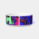This is a heavy, durable bowl decorated with Tibbies of many colors, the perfect size for hungry/thirsty Tibs. The design is interesting and printing clear.