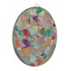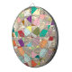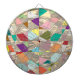 A confetti tapestry of colors form this abstract design. Background in pale gold foil.