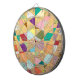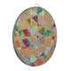 A confetti tapestry of colors form this abstract design. Background textured sun burst pattern.