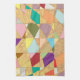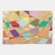 A confetti tapestry of colors form this abstract design. Background textured sun burst pattern.