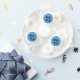 These stickers for candy mints or chocolates have a group of four abstract black turtles with coloured shells in red, yellow, blue and green with a blue water background with tiny bubbles. Customise your text with the template.