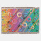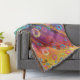 A quality printed throw has its advantages. This is a much finer weave throw than its loopier cousins, and though lighter, it is worth the investment for custom room accessorizing. The back is much prettier than the typical brown, and the fringe on the long sides very vivid, the selvage nicely done. Before photographing, I washed the throw in cold water, delicate, with a thicker woven throw the same size. On tumble dry low, this throw was dry in half the time as the other. This is a very practical quality if you use throws for furniture covers or to wrap up in frequently. The sleekness of the fabric makes it a great layer for accenting or protecting without the feeling of sitting on too much stuff. Perfect for napping or when you feel a light chill coming on. The color printing is beautiful and on this fabric, matched the design and color of my Photoshop image. This is an advantage for blending room fabrics and colors. The fringe on the short sides prints the colors from the design image and therefore varies from the side fringe. I streaked a white fractal line through the plaid pattern to give the illusion of weaving. This printed as crisp as an illusory thread, and put some white in the short side fringe, showing another advantage of print vs loomed- for artistic purposes, line lines, detail, and color integrity can be planned and preserved. My loomed throws have color limitations and more of a needlepoint texture. Print throws reproduce an exact image. The throw felt a little stiff straight out of the package, but this went away in the first delicate wash. Of course I searched the wash water for ink or bleeding and there was none.