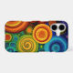This abstract artwork is a celebration of color, rhythm, and hypnotic movement. Layered spiral circles unfold across the composition, each built from intricate textures that draw the eye inward and outward at the same time. Rich tones of gold, amber, teal, blue, green, and deep violet interlock seamlessly, creating a dynamic visual flow that feels energetic yet harmonious.