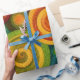 This abstract artwork is a celebration of color, rhythm, and hypnotic movement. Layered spiral circles unfold across the composition, each built from intricate textures that draw the eye inward and outward at the same time. Rich tones of gold, amber, teal, blue, green, and deep violet interlock seamlessly, creating a dynamic visual flow that feels energetic yet harmonious.