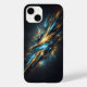 Power up your device with this stunning abstract lightning phone case. The design features sharp, crystalline shards in electric blue and vibrant gold, exploding against a dark, moody background with realistic energy sparks and bolts. This high-energy digital artwork represents strength, speed, and modern sophistication. Perfect for those who love bold, futuristic aesthetics and dynamic tech accessories. Durable protection that transforms your iPhone or Samsung Galaxy into a striking piece of electric art.