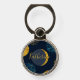 Fun abstract pattern of moon and stars on a dark blue background with printed gold foil accents.